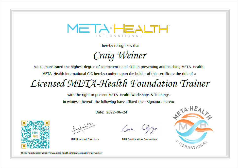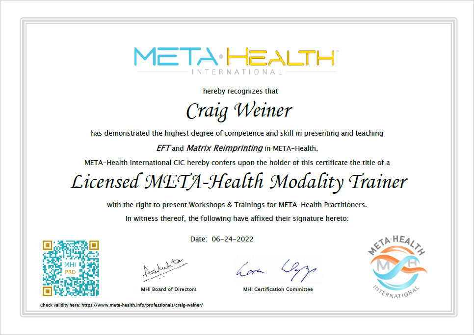 • Certified EFT MRA Matrix Reimprinting Trainer